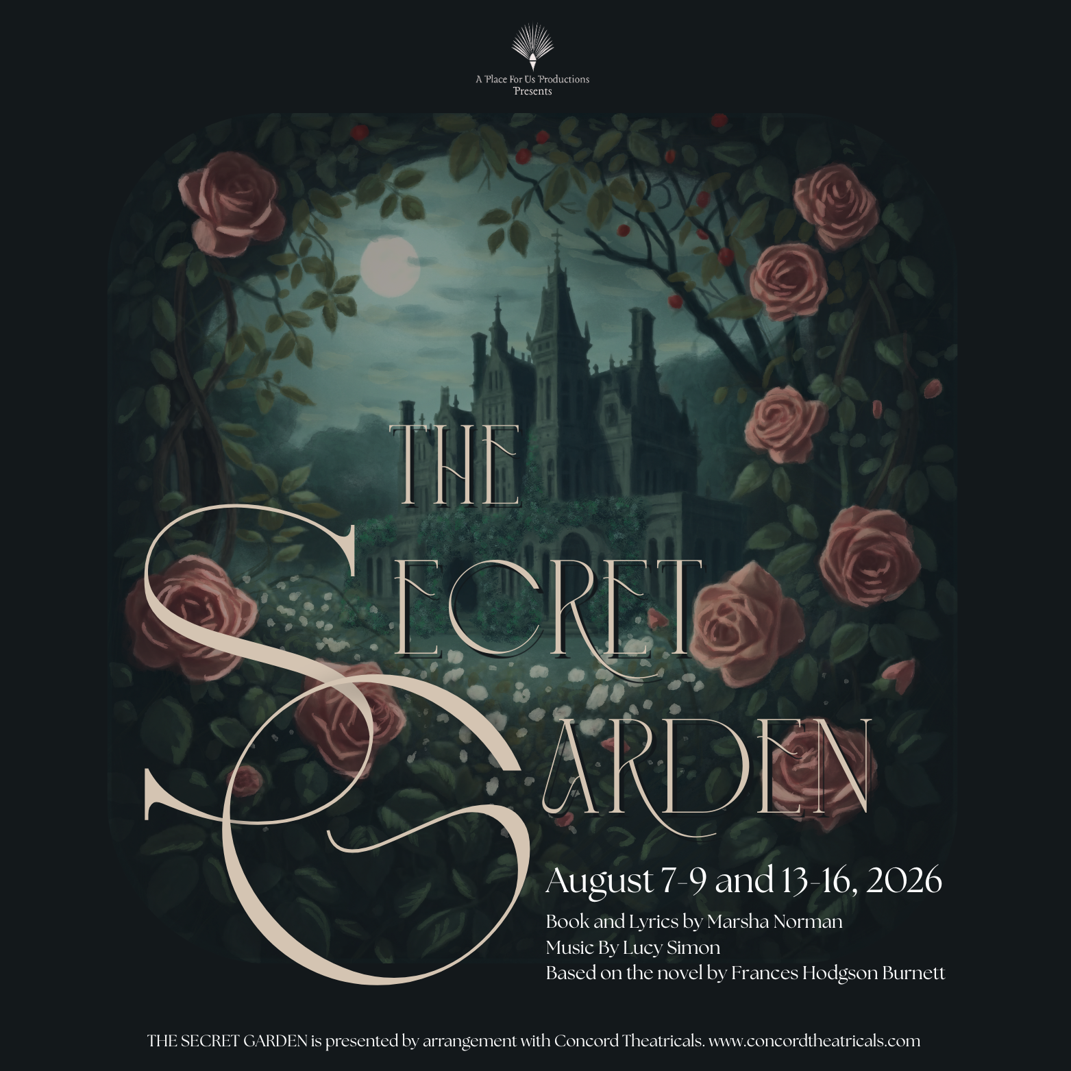 The roles of MARY LENNOX, COLIN CRAVEN, NEVILLE CRAVEN and DICKON are particularly demanding and will require extensive rehearsal and preparation by the actor outside of scheduled rehearsals. In casting these roles, we will need to thoughtfully consider each performer’s availability and commitments beyond the show to ensure the level of time and focus these roles require can be fully met.